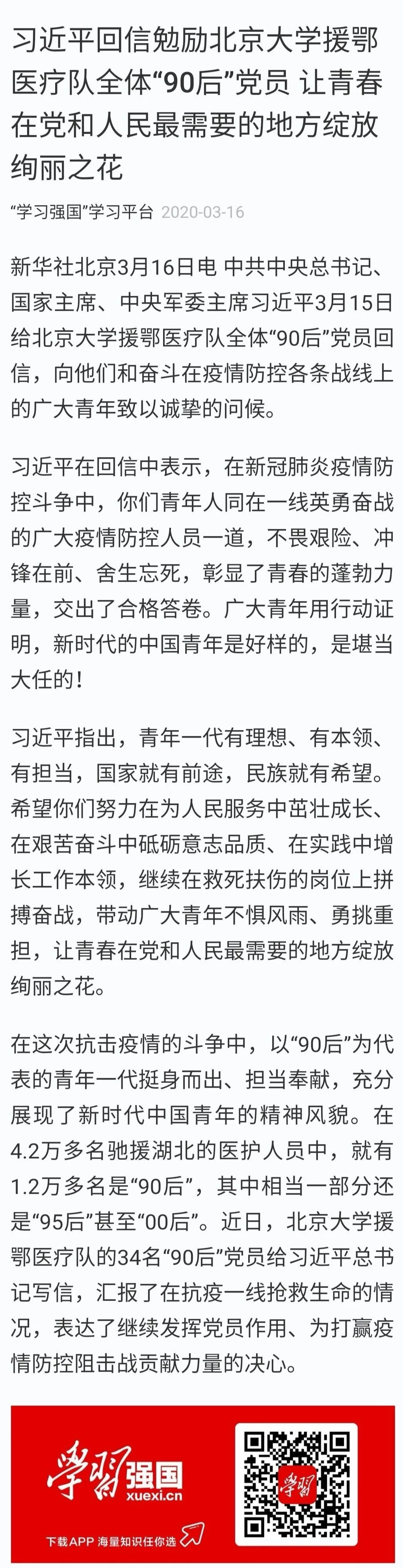 在防控疫情的关键时期,林学院团委积极组织广大团员认真学习了习近平总书记给北京大学援鄂医疗队全体“90后”党员的回信,习近平总书记回信中表达了对广大青年的深深嘱托和拳拳期望,林苑学子深受鼓舞,热情回应。
